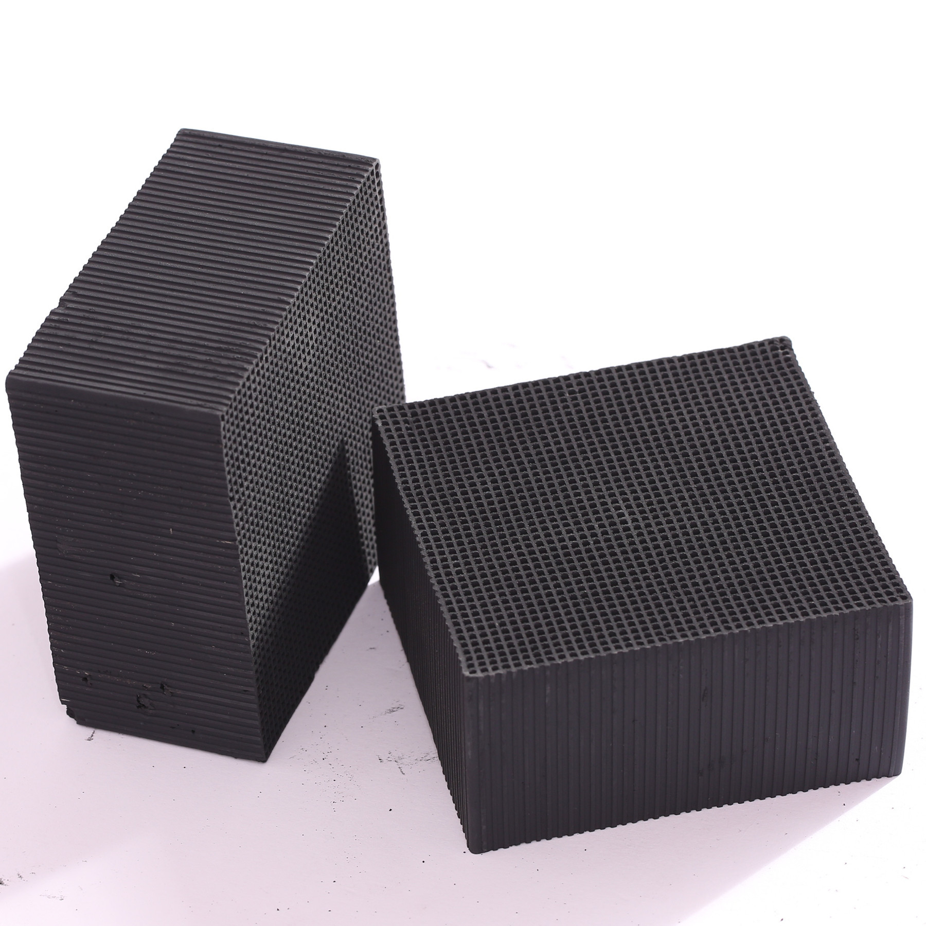 3、蜂窝状活性炭由于其独特的蜂窝结构,还具有开孔率高、几何表面积更大、扩散路程短、耐磨损、抗粉尘污染能力强等优点。
