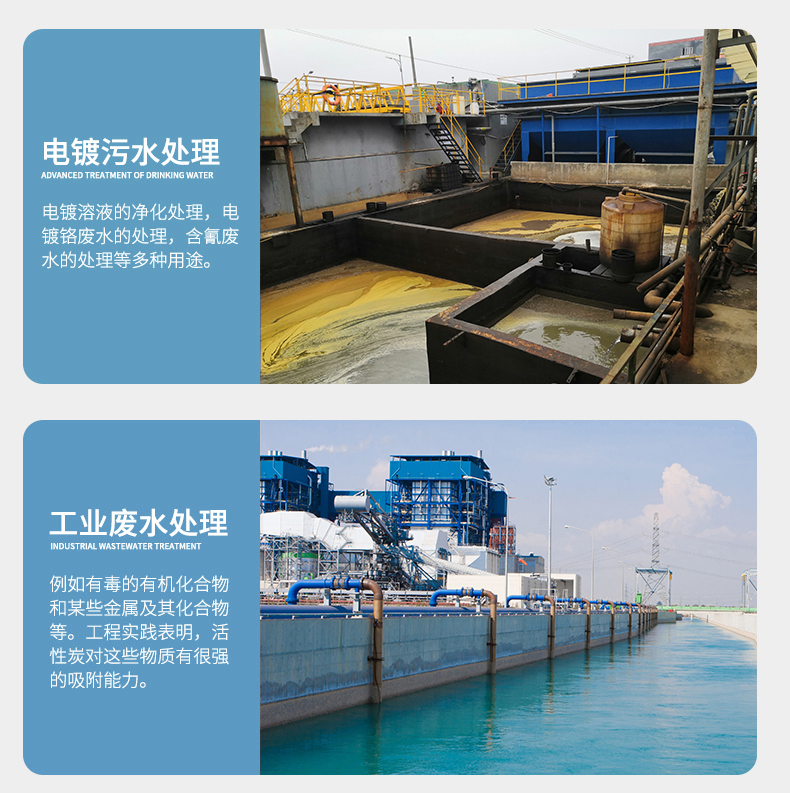 2、自来水厂:利用木质粉状活性炭的特性,具有吸附过滤效果,达到自来水排放标准。