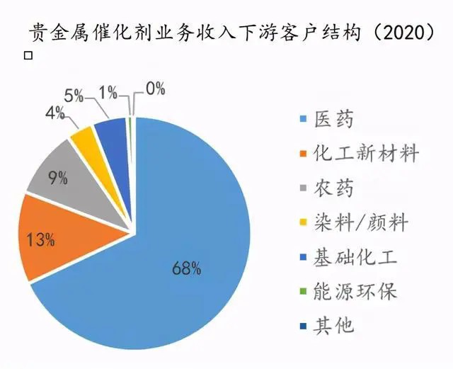 贵金属催化剂的上游主要涉及贵金属矿产、载体研制等。贵金属在全球属于稀缺资源,贵金属催化剂的主要原材料是铂、钯等贵金属原料,而我国在铂族金属资源上属于极度匮乏的国家,主要贵金属大部分依赖进口,其价格受全球和下游行业经济周期的影响变化快、波动大,且铂族金属价格昂贵,通常占产品生产成本的90%以上,所以贵金属价格的波动对企业成本影响较大。贵金属催化剂用载体种类繁多,以硅酸盐、金属氧化物、炭载体为主。贵金属催化剂下游应用十分广泛,涉及石油化工、煤化工、医药、农药、食品、染料、颜料、化工新材料、环保、新能源、电子等各领域。
