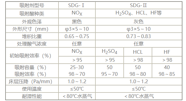 SDG吸附剂技术参数: